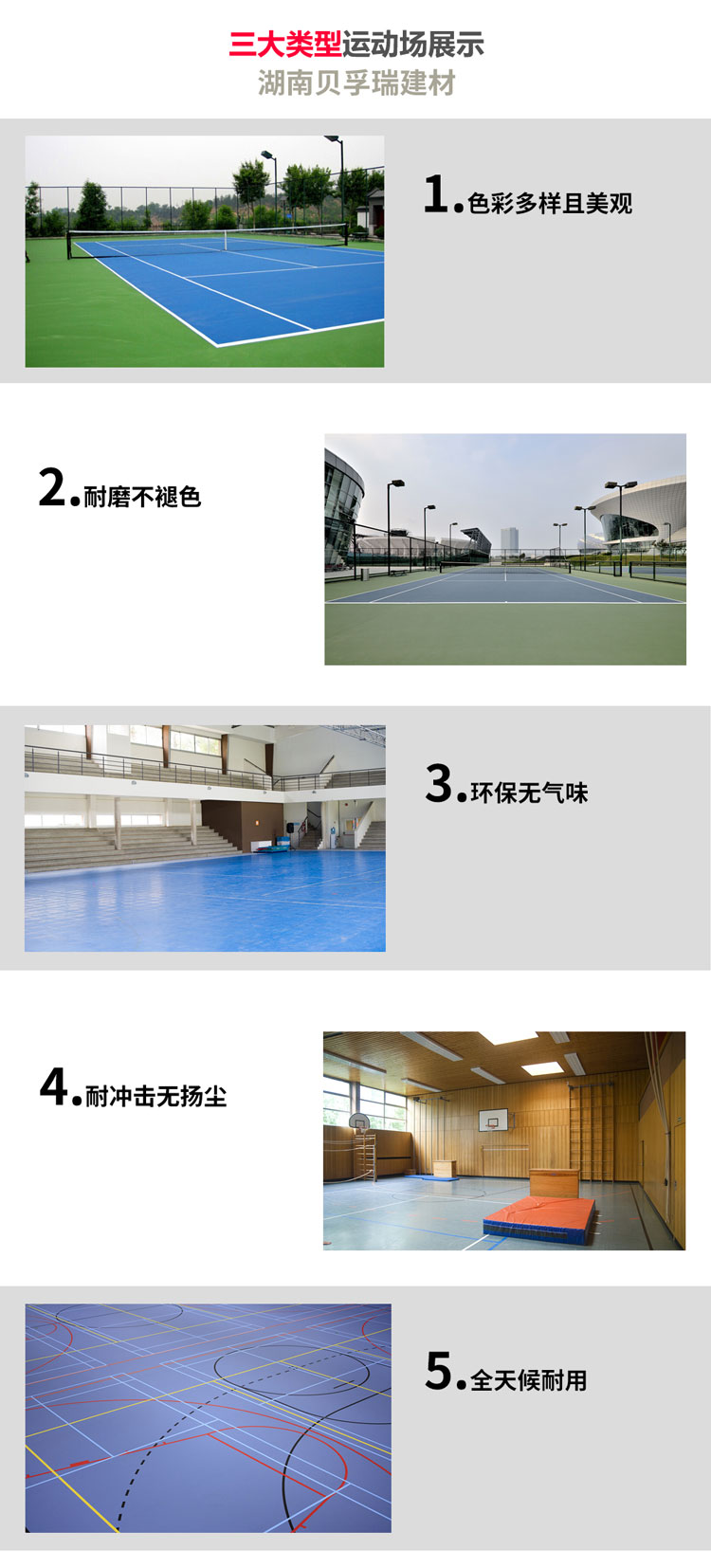 5、技術穩定性:無論是大球還是小球的回彈性、吸震性及摩擦系數能貫穿整個場地系統,保證其技術穩定性。6、理想的綜合功能:適用于室內外籃球場,網球場,排球場,羽毛球場,手球場,休閑場地,健身房等多項運動地面。